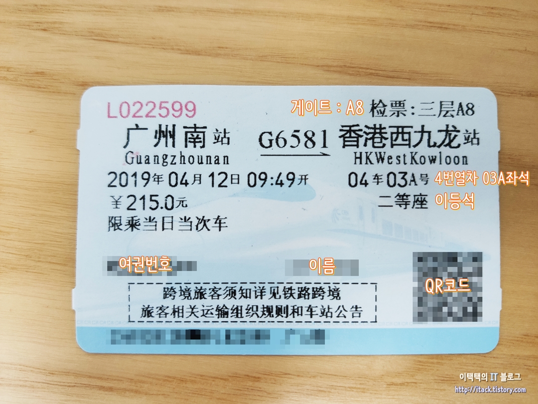 https://itack.tistory.com/257 중국 광저우 남역에서 홍콩 서구룡까지 고속열차 타고 가기! (향설역 출발) 여행 가기 전 티켓부터! 광저우에서 홍콩으로 놀러 가려고 고속열차를 알아봤어요. 중국온 지 1달밖에..