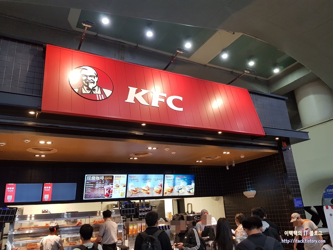 들어가기 전에 허기가 져서 KFC에 가서 모닝 토스트와 에그타르트 세트를 시켰습니다.