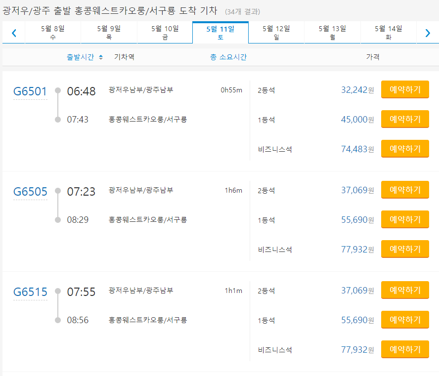 광저우에서 홍콩으로 놀러 가려고 고속열차를 알아봤어요.