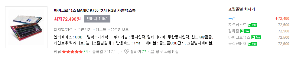 오늘은 키보드를 바꾸고 싶은 뽐뿌가 와서 찾던 중 10만원 이하 키보드는 카일 광축이 대세라는 글을 보고