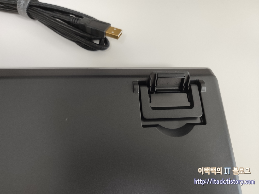 하면의 키보드 높이 조절 바는 2개로 이루어져 있어 각자의 선호에 따라 높이를 조절할 수 있습니다.