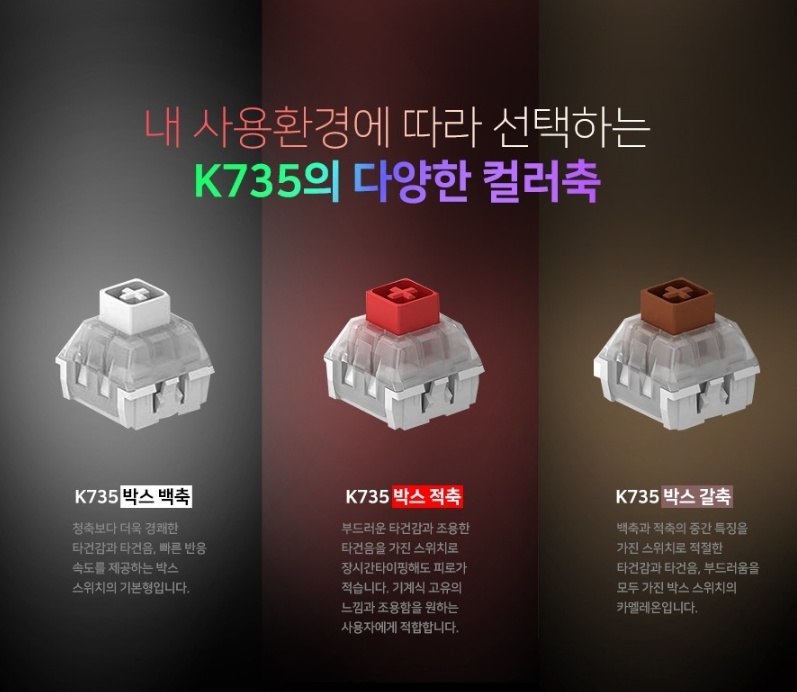 청축과 비슷한 키압인데 생각보다 그렇게 소리가 크진 않은 느낌.